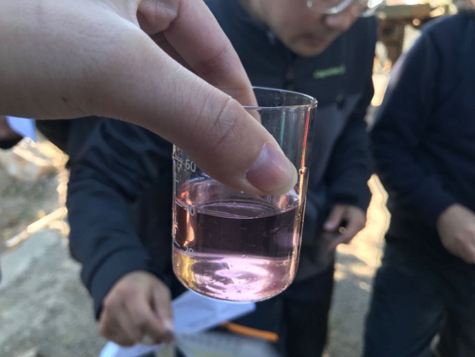 志愿者一行首先来到了南丰产河,绿邻居的张春树老师细心讲解水质标准,教授检测方法,带领志愿者采集水样,监测河流水质。本次检测的主要指标是河道水体PH值、矿物质含量及余氯含量。张老师指出,最关键的检测指标是PH值,PH值为7时最佳,小于7时表明可能存在工业废水严重乱排的现象,大于7小于8.5时表明水质在可控范围内,大于8.5时表明可能存在居民生活废水排放较多的现象。