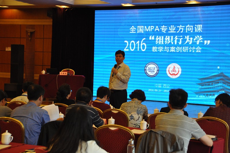2016年9月27日至28日,由教育部学位与研究生教育发展中心、全国公共管理专业学位研究生教育指导委员会主办,长安大学MPA教育中心承办的2016年中国专业学位教学案例中心第12期案例教学培训暨全国MPA专业方向课“组织行为学”教学与案例研讨会在西安曲江惠宾苑宾馆召开。来自近50所MPA培养院校的60余位教师代表参加了此次研讨会。