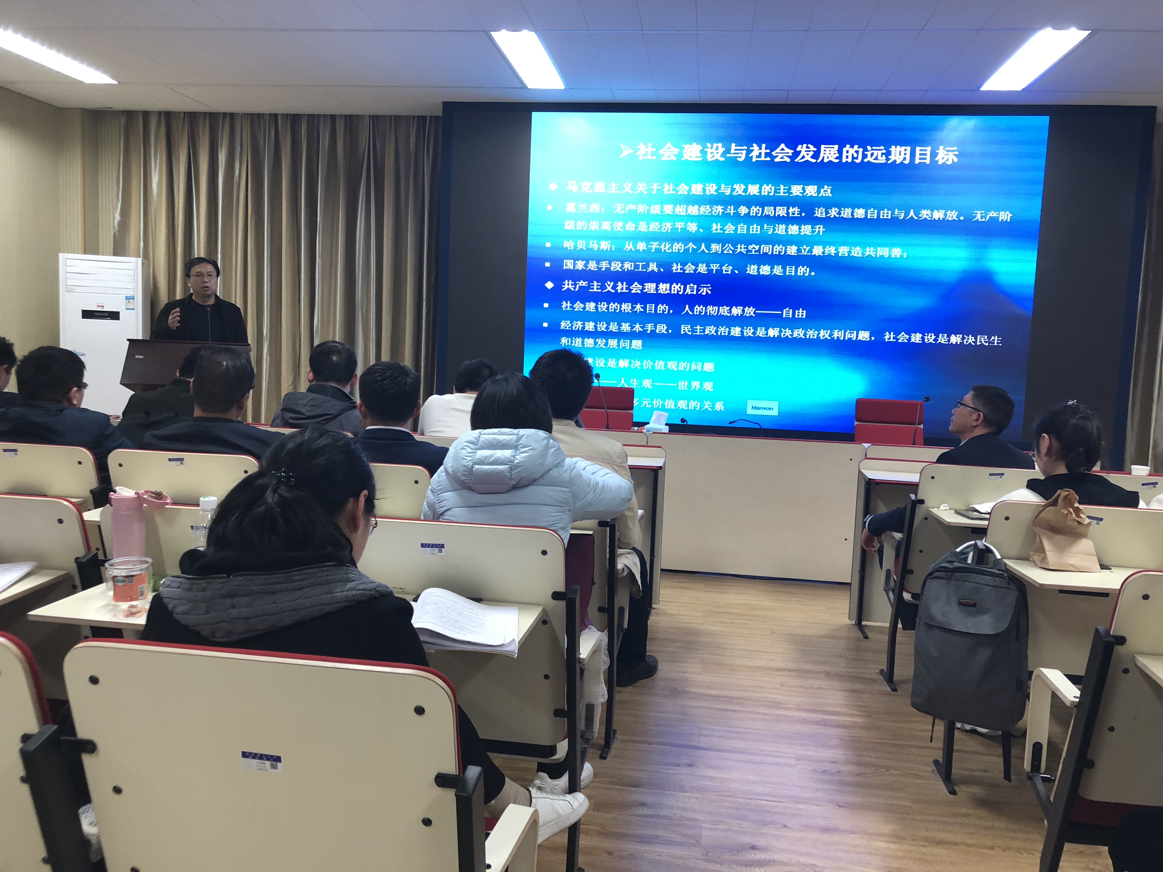 韩冬雪教授的学术报告围绕着“国家治理”这一主题展开。首先,韩老师对历任领导人在国家治理方面的政策理念做了深入解读。其次,韩老师通过实例介绍了中国基尼系数变化曲线。接着,韩老师阐述了提升社会治理的基本路径:一是通过发展非政府组织等方式提升社会治理;二是通过完善税收政策改善社会治理;三是通过改善贫富分化促进社会发展;四是提升文化凝聚力。韩老师强调,在国家治理过程中,政策、法律固然很重要,但人的观念更为重要。最后,韩老师提出了社会发展的三个目标:一是建立橄榄型社会,二是建立发达的民主政治制度,三是实现公民社会基础上的社会自治。
