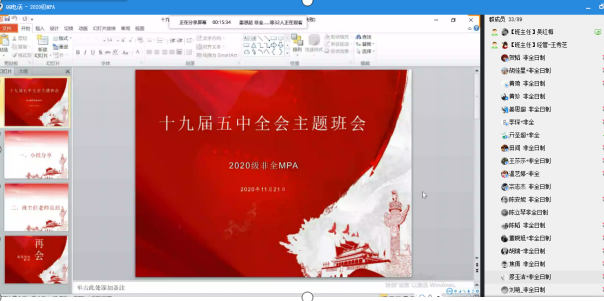 为深入学习贯彻十九届五中全会精神,提MPA研究生的理论水平,近日,南昌航空大学MPA中心组织各年级MPA研究生采用线上、线下两种不同形式,开展了“学习贯彻十九届五中全会精神”主题班会系列活动。
