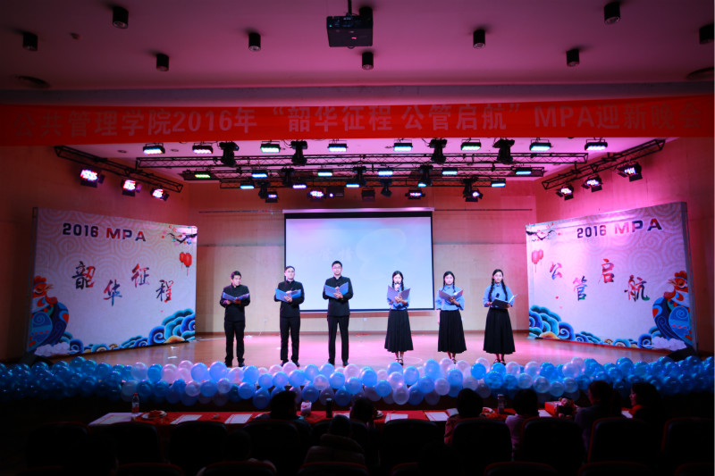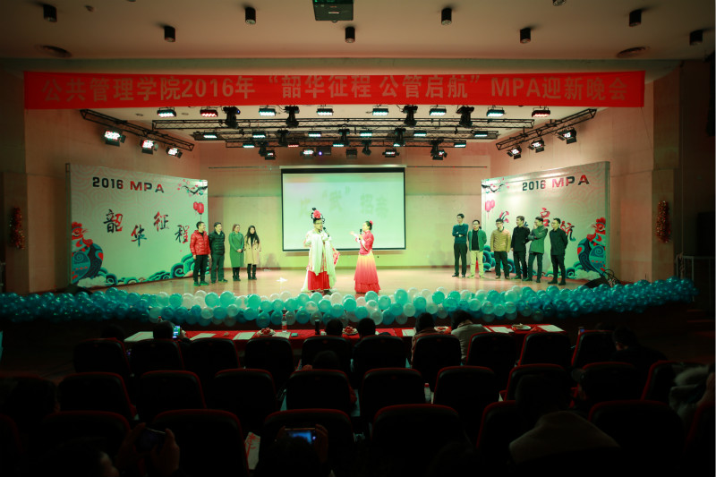 四川大学公共管理学院2016年“韶华征程,公管启航”MPA迎新晚会于12月24日晚七点,在望江校区文华活动中心二楼隆重举行。公共管理学院党委书记夏泽友、副书记刘玲、副院长罗哲、副院长罗亚玲、干部教育培训基地副主任王谦,以及部分MPA导师和MPA教育中心的工作人员一起与MPA学生观看了演出。