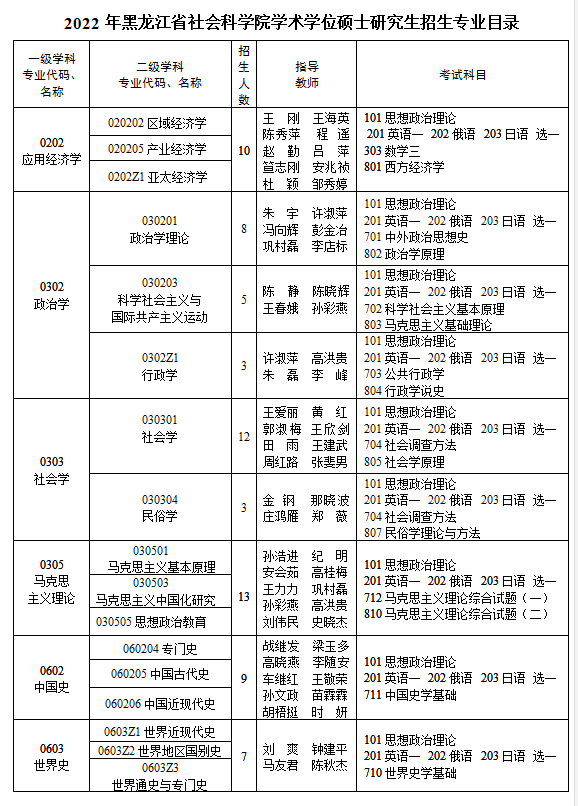 060200中国史:《中国古代史(上)》(第4版),晁福林主编,北京师范大学出版社,2016年;《中国古代史(下)》,宁欣主编,北京师范大学出版社,2009年;《中国近代史》(第4版),郑师渠主编,北京师范大学出版社,2016年;《中国现代史》(第4版),王桧林主编,北京师范大学出版社,2016年。复试参考:《渤海国史(修订版)》,魏国忠等,黑龙江人民出版社,2014年;《辽金简史》,李桂芝,福建人民出版社,1996年;《明史》(上下),南炳文、汤纲,上海人民出版社,2014年;《中日关系史》(全三卷),孙乃民主编,社会科学文献出版社,2006年;《中国东北沦陷十四年史纲要》,王承礼主编,中国大百科全书出版社,1991年;《俄中两国外交文献汇编(1619-1792)》,(俄)尼古拉•班特什-卡缅斯基,商务印书馆,1982年;《中俄关系通史》,黄定天,人民出版社,2013年。